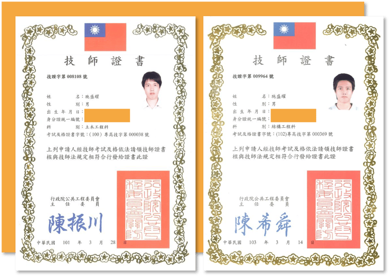 創辦人施盛耀先生具備土木技師與結構技師雙證照,同時有十年以上的工地管理經驗,結合專業與實務經驗,為每項工程打造穩健品質與長久信賴。
